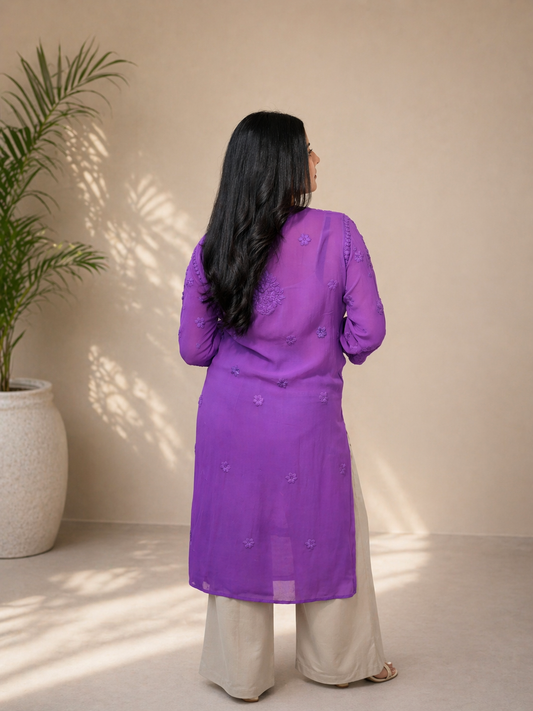 Aaradhya Handwoven Chikankari Deep Purple Long Kurta 100% Viscose