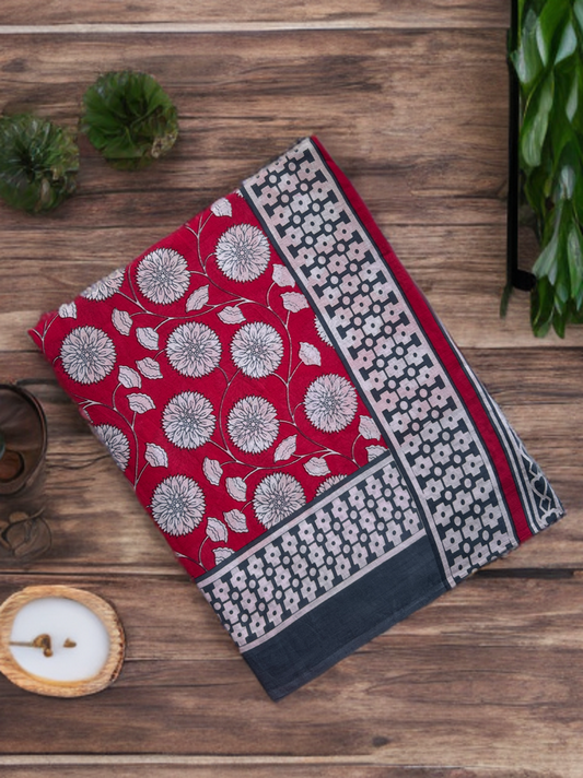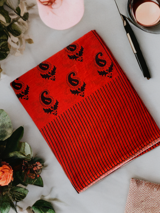 Laal Gulmohar Mul Cotton Saree
