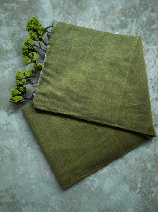 Off White Beige & Green Maheshwari Cotton Silk Saree