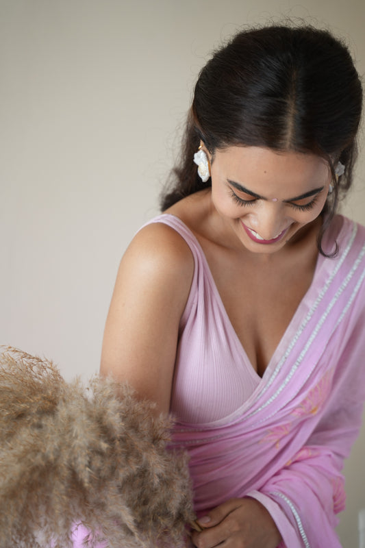 Pastel Pink Lotus Bloom Embroidered Mul Cotton Saree