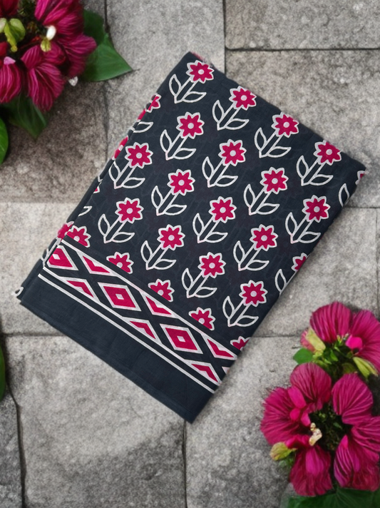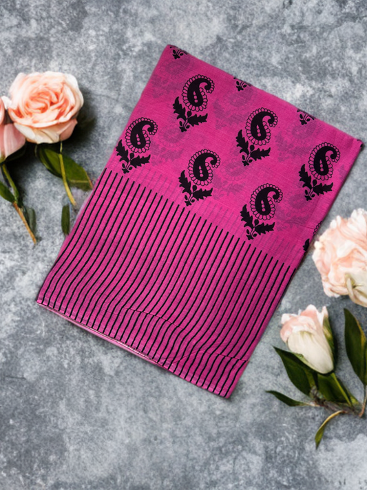 Raani Gulaabi With Kaala Buta Mul Cotton Saree
