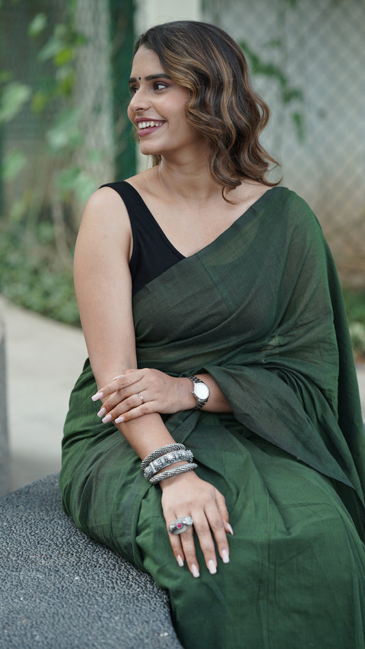 Pink and Pine Green Tie-Dye Cotton and Silk Chanderi Saree