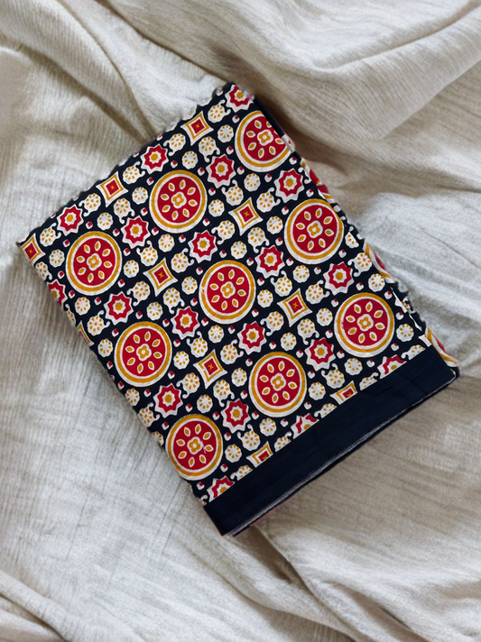 White and Teal Cotton and Silk Chanderi Handblock Print Saree