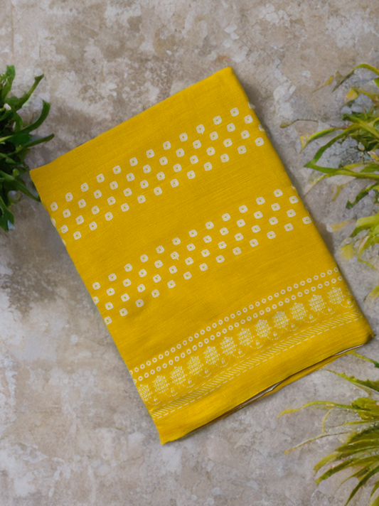 White and Light Caramel Cotton and Silk Chanderi Handblock Print Saree