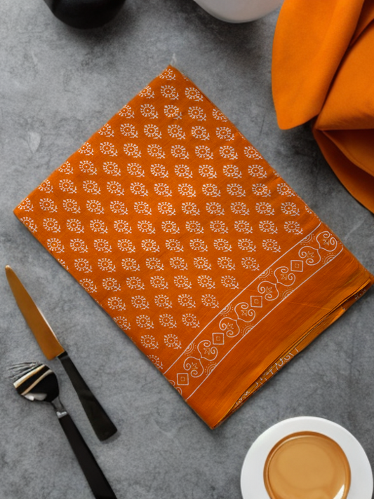 Beige and Peach Orange Maheshwari Cotton Silk Saree