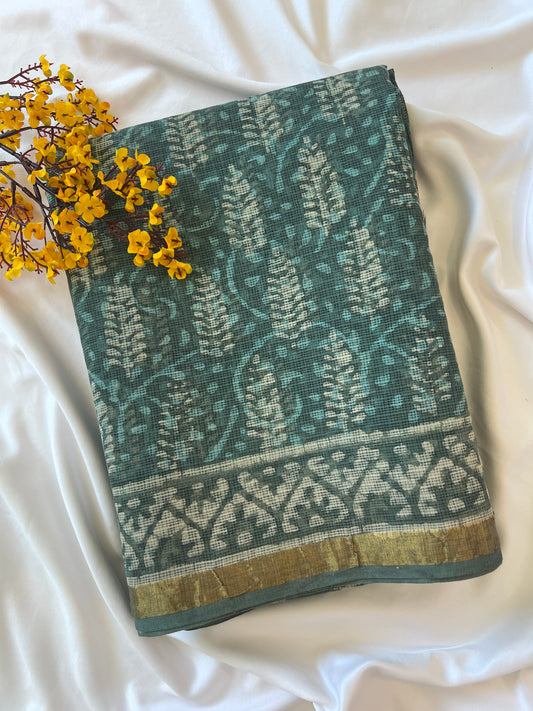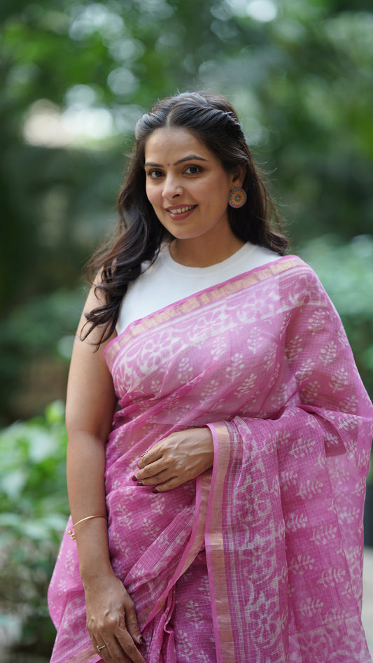 Burnt Burgundy Handblock Print Kota Doria Saree