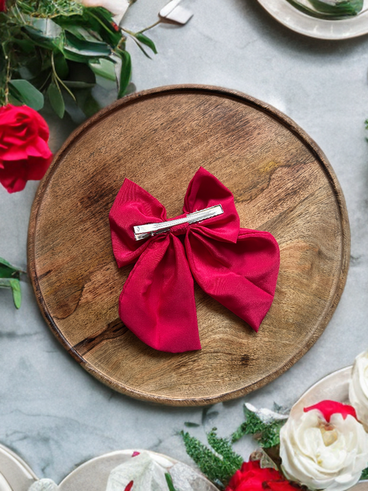Dusty Mauve Satin Hair Bow With Alligator Clip