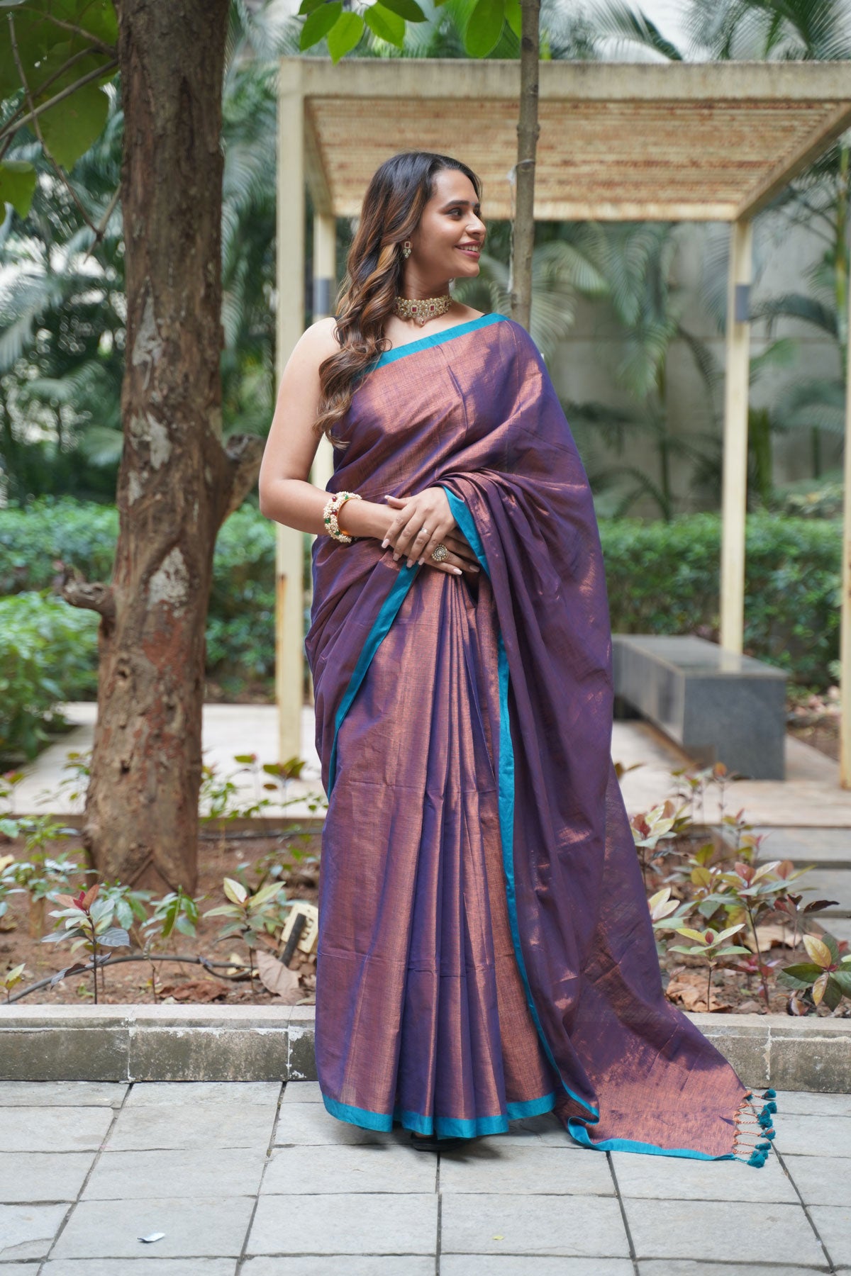Step into a realm of timeless elegance with our Antique Brown Khadi Tissue Saree, gracefully adorned with a Teal Border. Crafted from exquisite Khadi Tissue fabric, this masterpiece stands tall at 45.5 inches, offering a regal drape. The 5.47-meter length is a canvas for the rich heritage, and the saree is accompanied by an 80 cm running blouse that adds a touch of contemporary allure. Join our exclusive group to revel in the fusion of tradition and modernity. Let the Antique Brown allure and Teal Border weave a story of sophistication, as we celebrate the artistry of Khadi in every fold and shimmer.