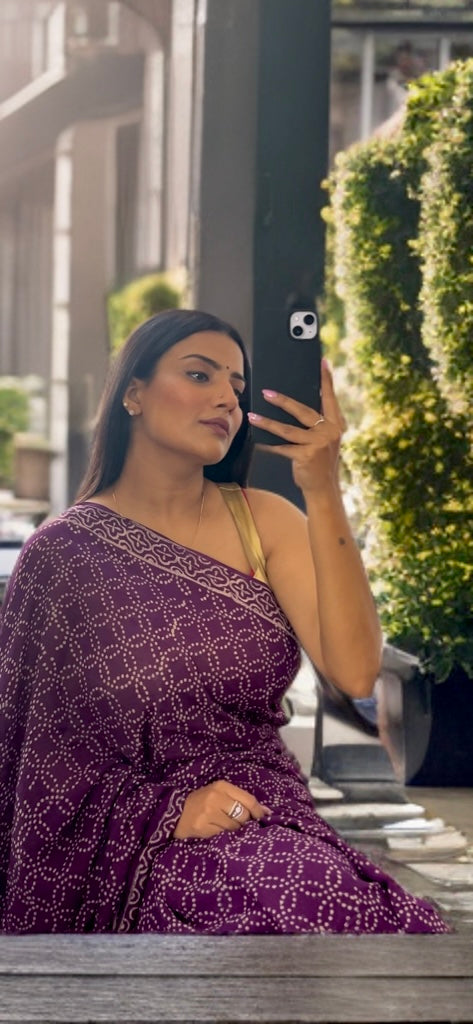 Note: It's a handblock printed saree all done by artisans. There might be slight irregularities in the print, motif, or colour. These are not defects, it's the nature of handicraft products.