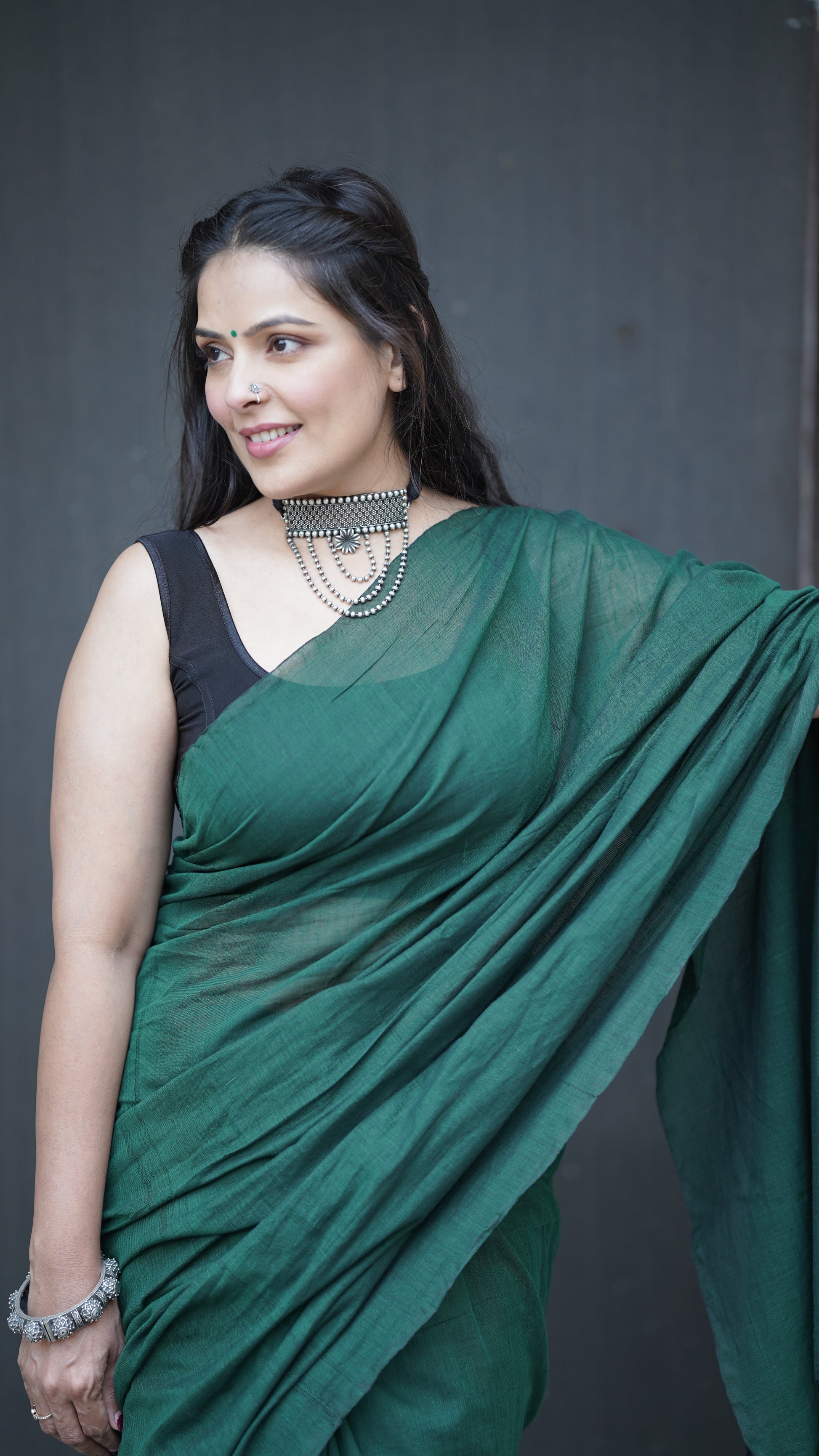 Indulge in the simple elegance of our Castleton Green Pure Cotton Saree, a canvas of purity and comfort. Woven from the finest Pure Cotton, this saree stands tall at 46 inches, offering a soft and graceful drape. With a length of 5.5 meters, the saree unfolds as a testament to the beauty of minimalism. Paired with a 1-meter plain blouse, this ensemble is a celebration of timeless charm and comfort. Care for this piece with a gentle handwash using cold water and mild detergent, preserving its pristine allure. Join our exclusive group and embrace the enduring elegance of this resplendent creation.
