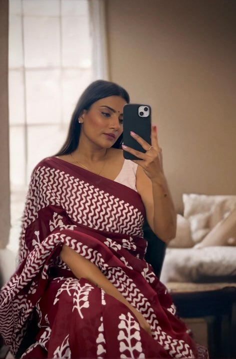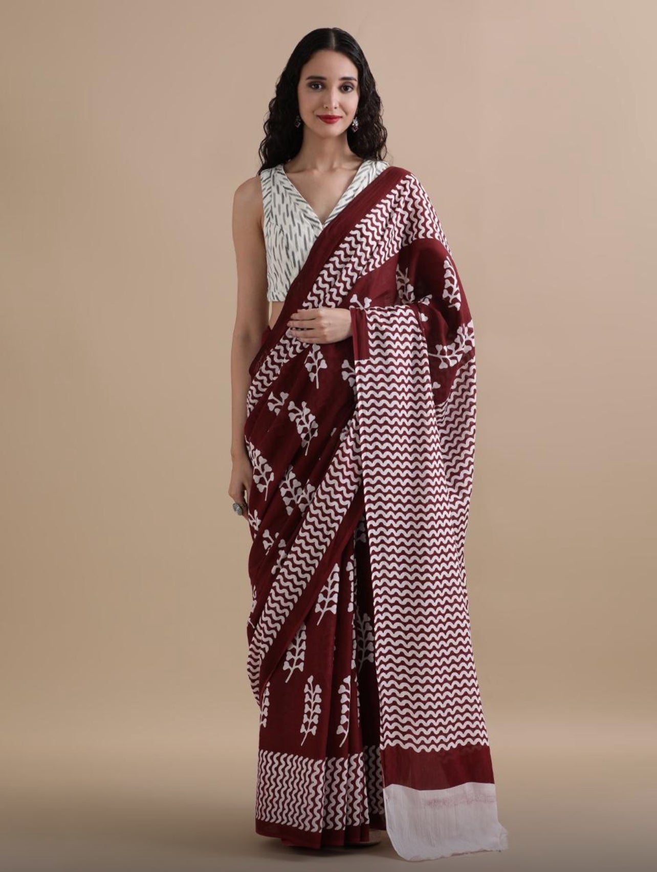 Wrap yourself in the delicate charm of our Laal Gulmohar Mul Cotton Saree, a fusion of tradition and contemporary elegance. Woven from the finest Mul Cotton, this saree stands at 45 inches, promising a lightweight and graceful drape. The Handblock Print, intricately designed, adds a touch of artisanal charm, creating a visual symphony on the fabric. With a length of 5.5 meters, the saree unfolds a tale of timeless sophistication. Paired with a 1m printed blouse, this ensemble is a celebration of seamless beauty and style. Care for this piece with a gentle handwash using cold water and mild detergent, preserving its pristine allure. Join our exclusive group and immerse yourself in the enduring charm of this resplendent creation.
