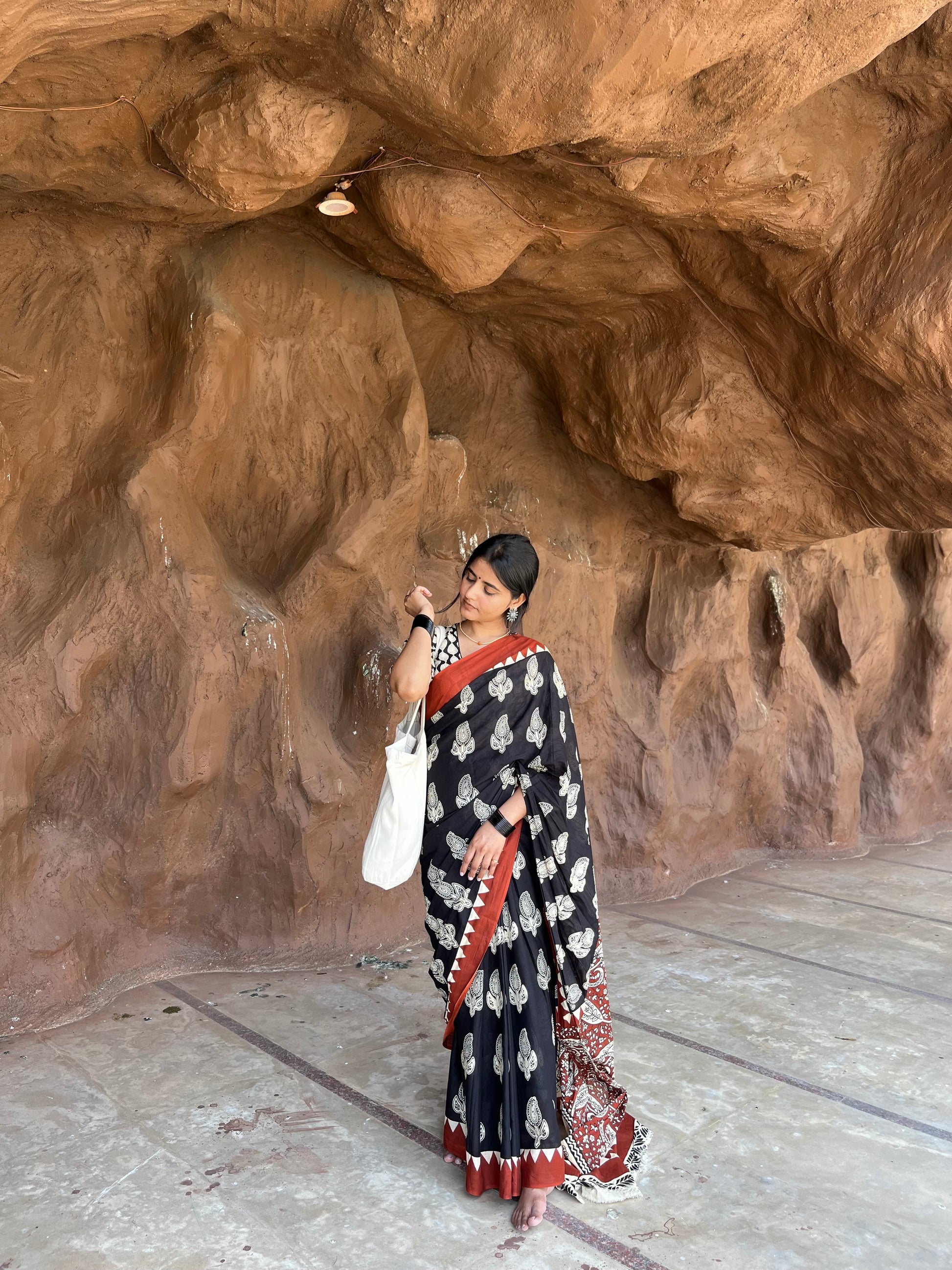 Midnight Melody Handblock Cotton Saree