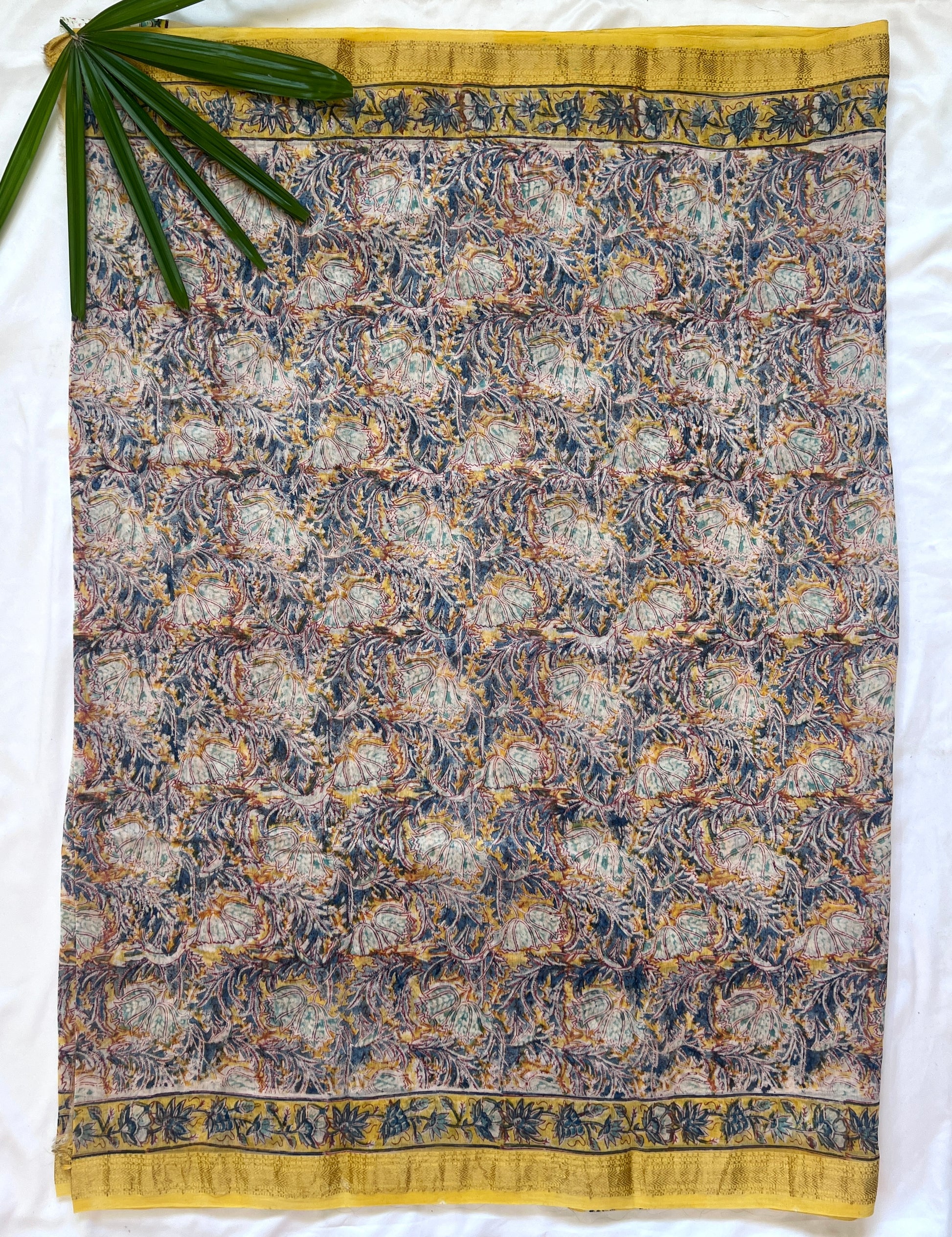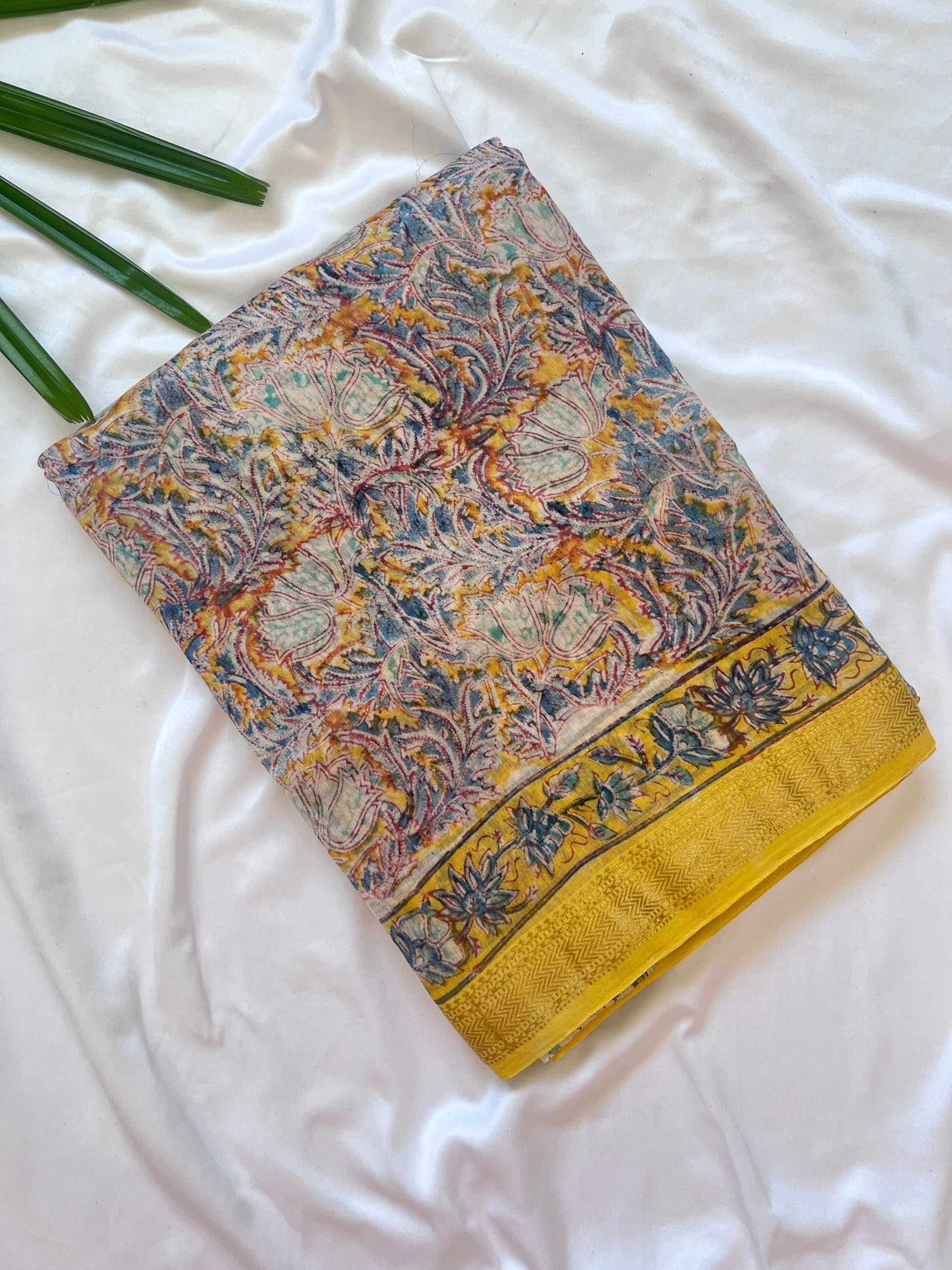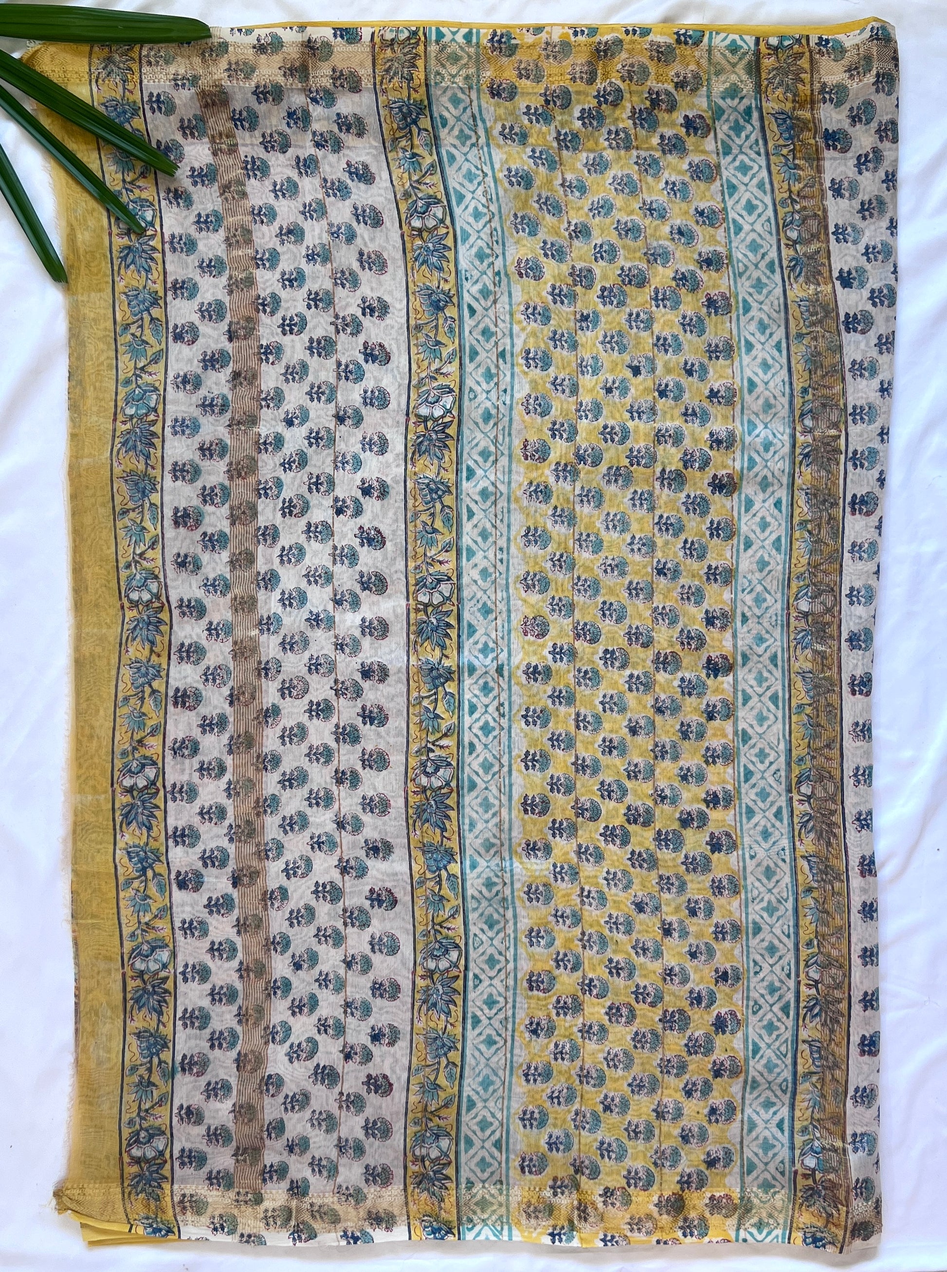 Note: It's a handblock printed saree all done by artisans. There might be slight irregularities in the print, motif, or colour. These are not defects, it's the nature of handicraft products.