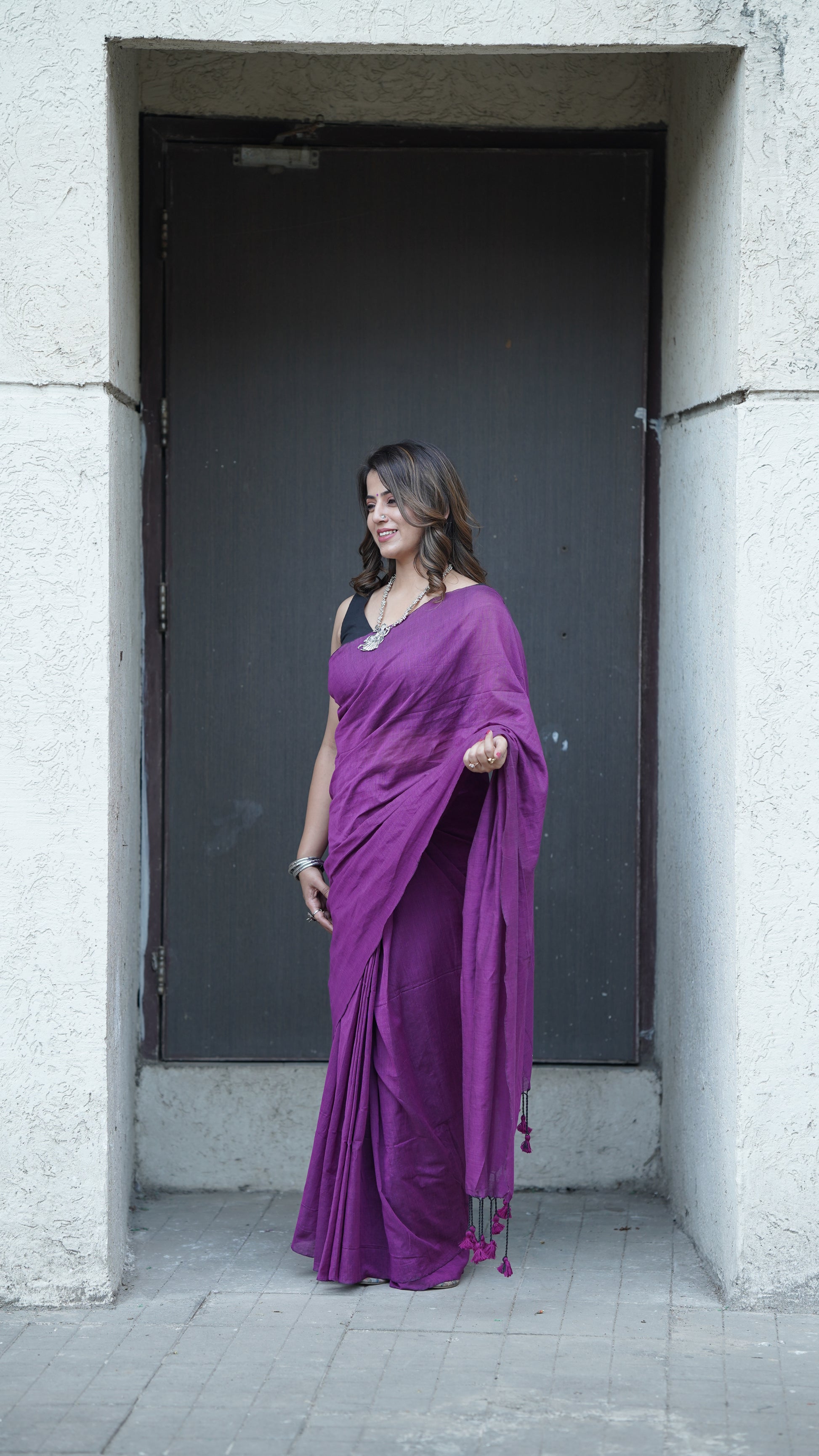 Drape yourself in the regal charm of our Plum Purple Pure Cotton Saree, a celebration of simplicity and grace. Woven from the finest Pure Cotton, this saree stands at 45 inches, offering a soft and elegant drape. With a length of 5.5 meters, the saree unfolds as a canvas of timeless sophistication. Paired with a 1-meter plain blouse, this ensemble is a seamless blend of classic charm and comfort. Care for this piece with a gentle handwash using cold water and mild detergent, preserving its pristine allure. Join our exclusive group and immerse yourself in the enduring elegance of this resplendent creation.