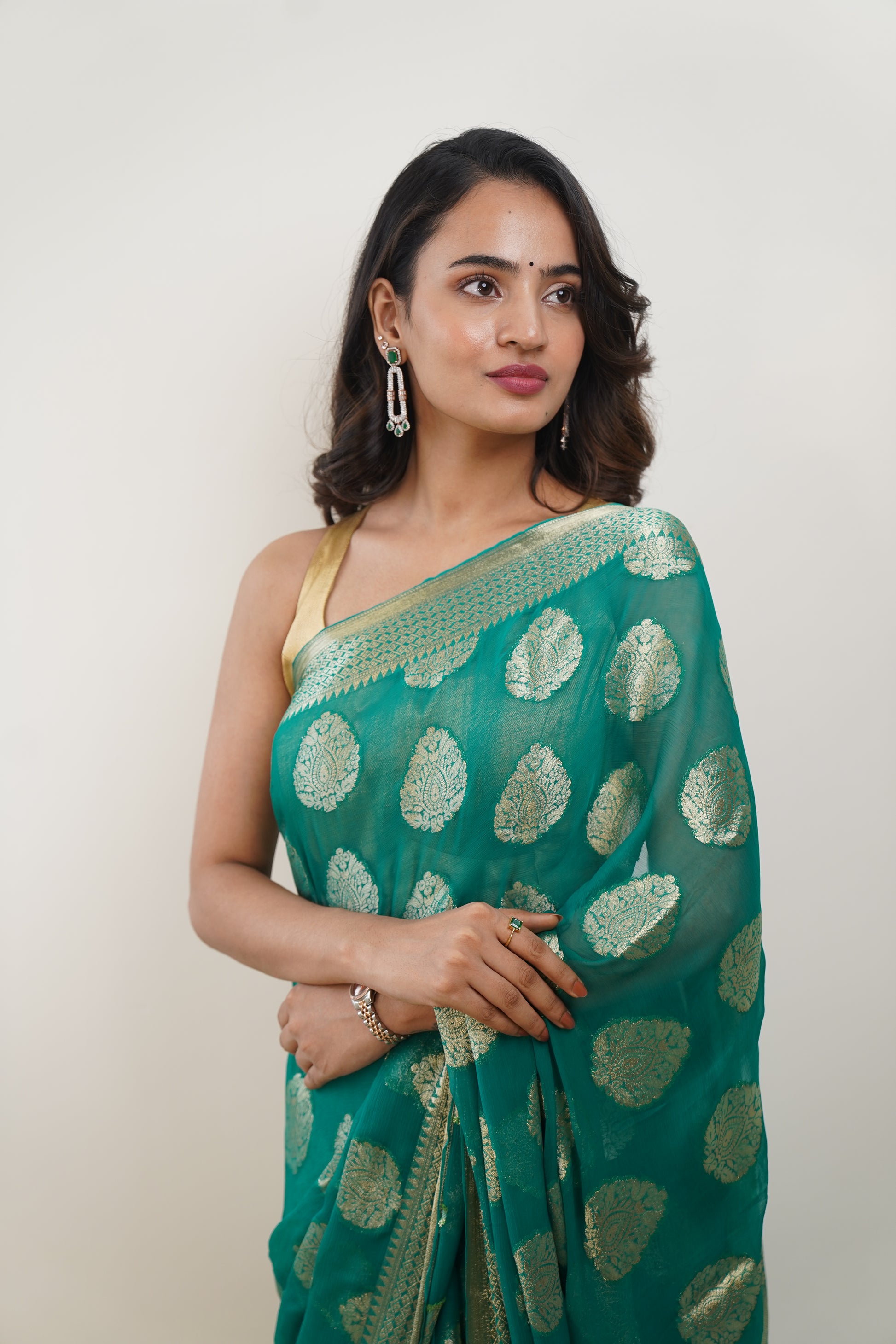 Sacramento Green Pure Chiffon Saree with Zari Buti